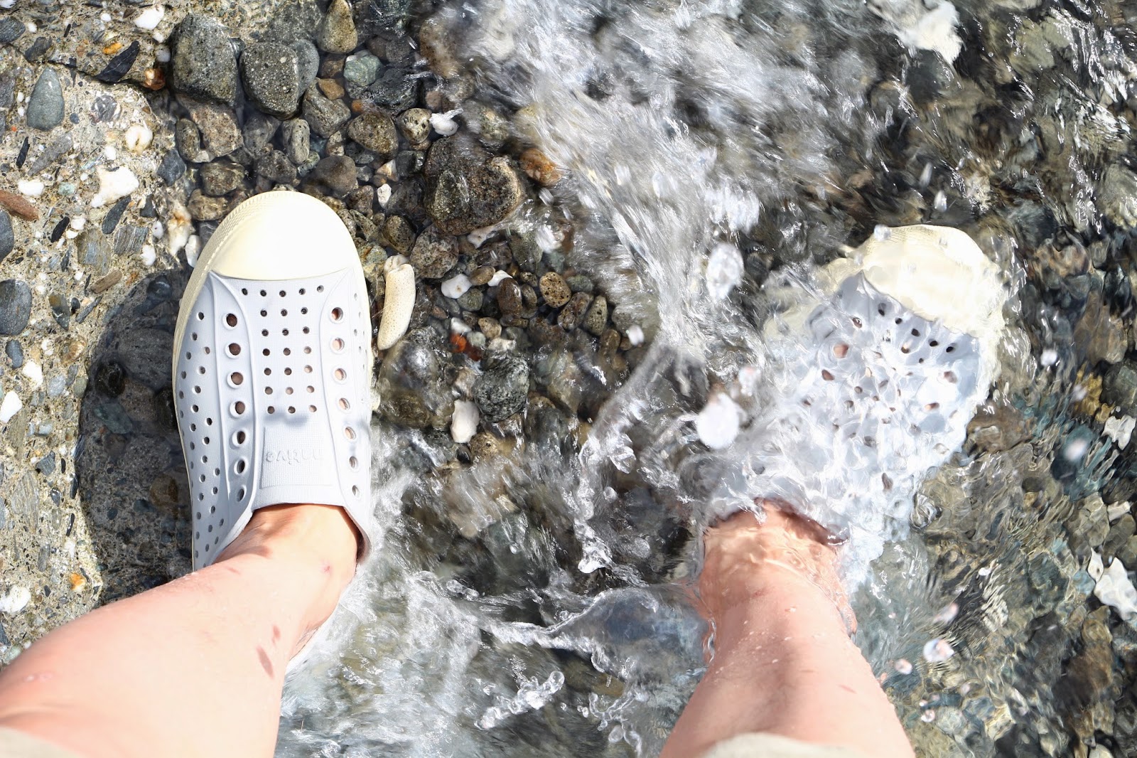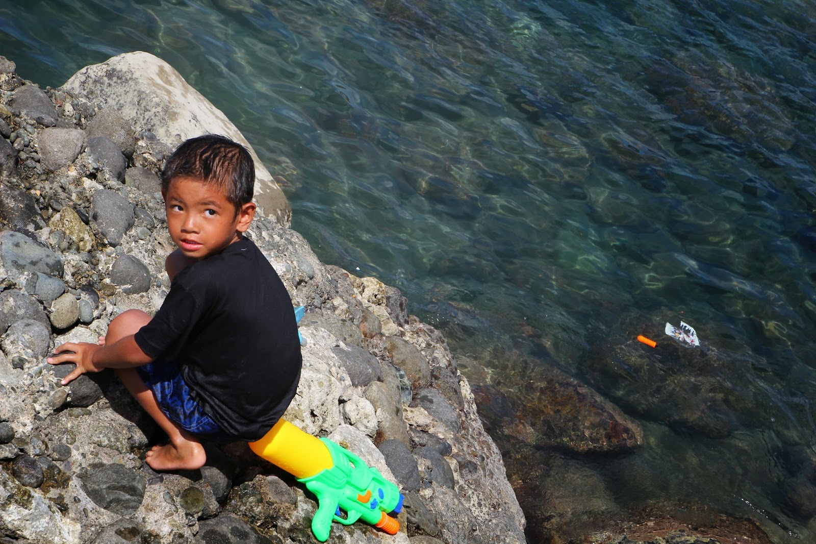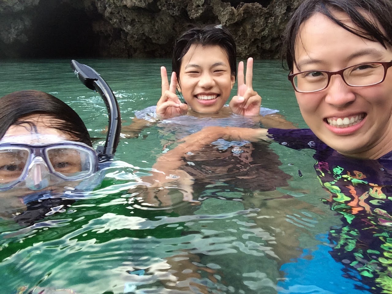 第一次跟小幫手到東清秘境玩水,一跳下去發現,有礁岩的地方免強還能在水中站立,一離開礁岩,水深就會將人滅頂。